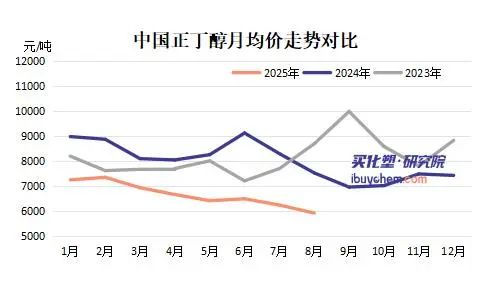 2025年上半年,国内正丁醇市场呈现震荡偏弱运行,虽然供应量和消费量均有不同程度增加,但由于下游恢复缓慢以及关税政策等因素影响,消费增长幅度明显小于供应增长。在这种情况下,生产企业为维持低库存状态连续让利,导致市场价格不断刷新低点。进入8月后,随着供应量持续攀升而下游需求疲软,市场供需格局发生根本性转变,价格一路走低,正丁醇生产利润进入负值区间。数据显示,目前行业平均亏损已达250元/吨,企业经营压力显著加大。