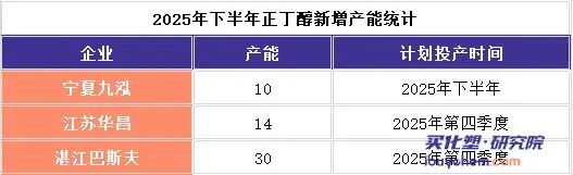 从供应端来看,截止至2025年上半年,国内正丁醇总产能达到382万吨/年,产量130万吨,较2024年同期增长5%。下半年预计还将有三套新装置,共计54万吨产能将投产,市场货源增长明显。与此同时,前期检修装置陆续恢复生产,进一步增加了市场供应量,这些因素共同导致市场现货供应充足,供需格局向供大于求方向加速倾斜。